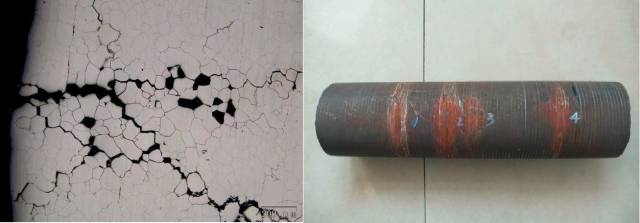 例如:某公司合成氨廠爐的工藝氣預熱管因為晶間腐蝕引起的開裂,發生泄漏事故。預熱管出現晶間腐蝕是因為奧氏體不銹鋼晶界析出Cr23C6,在管內Cl-作用下管子短期出現晶間腐蝕開裂。